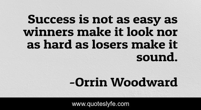 This page presents the quote "Success is not as easy as winners make it look nor as hard as losers make it sound.". Author of this quote is Orrin Woodward. This quote is about excuses, winners, losers, winning,.