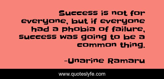 This page presents the quote "Success is not for everyone, but if everyone had a phobia of failure, success was going to be a common thing.". Author of this quote is Unarine Ramaru. This quote is about failure, motivation, laziness, phobia, success,.
