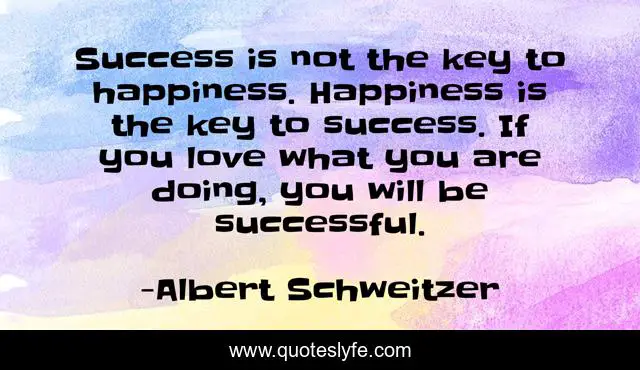 This page presents the quote "Success is not the key to happiness. Happiness is the key to success. If you love what you are doing, you will be successful.". Author of this quote is Albert Schweitzer. This quote is about enthusiasm, inspirational,.