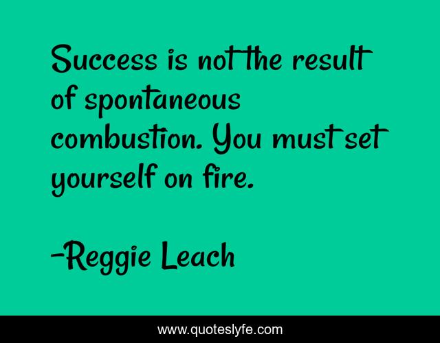 This page presents the quote "Success is not the result of spontaneous combustion. You must set yourself on fire.". Author of this quote is Reggie Leach. .