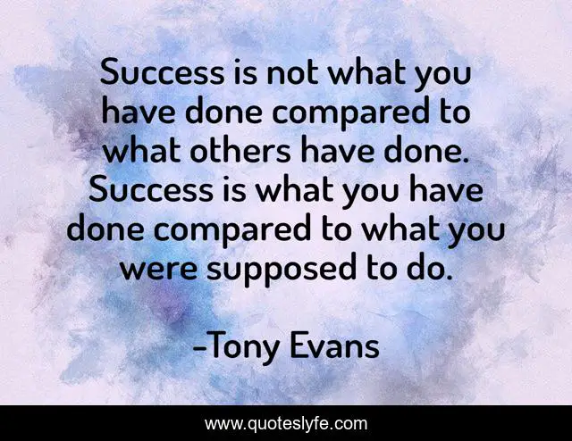 This page presents the quote "Success is not what you have done compared to what others have done. Success is what you have done compared to what you were supposed to do.". Author of this quote is Tony Evans. This quote is about christian, success,.