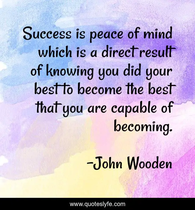 This page presents the quote "Success is peace of mind which is a direct result of knowing you did your best to become the best that you are capable of becoming.". Author of this quote is John Wooden. .