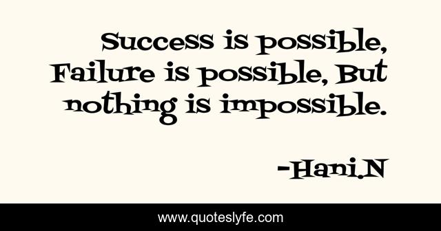 This page presents the quote "Success is possible, Failure is possible, But nothing is impossible.". Author of this quote is Hani.N. .