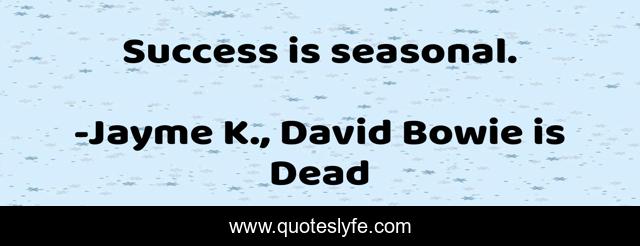 This page presents the quote "Success is seasonal.". Author of this quote is Jayme K., David Bowie is Dead. This quote is about inspriational, failure, success,.