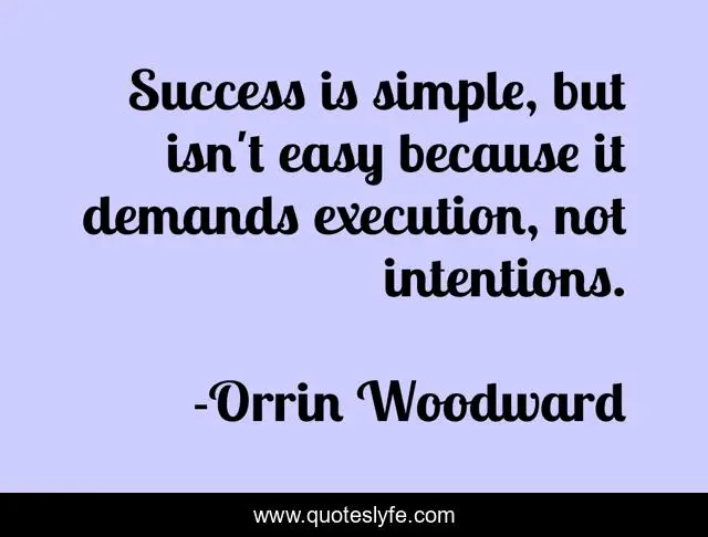 This page presents the quote "Success is simple, but isn't easy because it demands execution, not intentions.". Author of this quote is Orrin Woodward. This quote is about intentions, execution, results, success,.