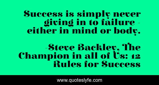 "Steve Backley, The Champion in all of Us: 12 Rules for Success Quotes." Quoteslyfe.com, 2025. Sat. 06 Dec. 2025. <https://www.quoteslyfe.com/quote/Success-is-simply-never-giving-in-to-32434>.