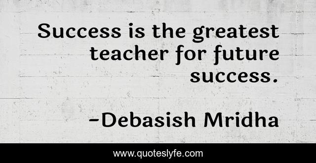 This page presents the quote "Success is the greatest teacher for future success.". Author of this quote is Debasish Mridha. This quote is about life, love, knowledge, inspirational, intelligence, philosophy, wisdom, quotes, affection,.