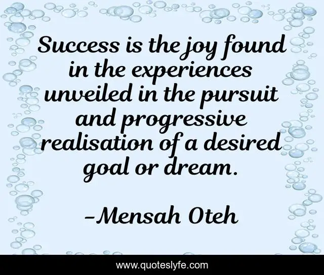 "Mensah Oteh Quotes." Quoteslyfe.com, 2025. Fri. 05 Dec. 2025. <https://www.quoteslyfe.com/quote/Success-is-the-joy-found-in-the-49173>.