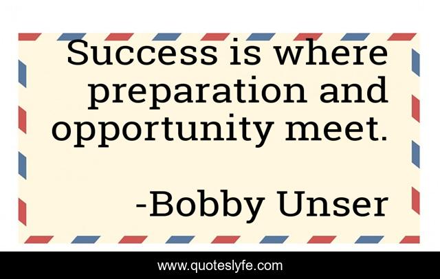 "Bobby Unser Quotes." Quoteslyfe.com, 2025. Sun. 07 Dec. 2025. <https://www.quoteslyfe.com/quote/Success-is-where-preparation-and-opportunity-meet-288594>.