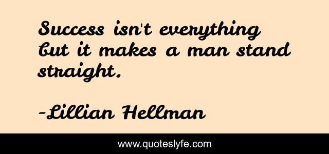 This page presents the quote "Success isn't everything but it makes a man stand straight.". Author of this quote is Lillian Hellman. This quote is about straight, stand, man,.
