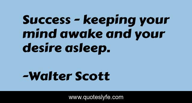 This page presents the quote "Success - keeping your mind awake and your desire asleep.". Author of this quote is Walter Scott. This quote is about desire, mind, awake,.