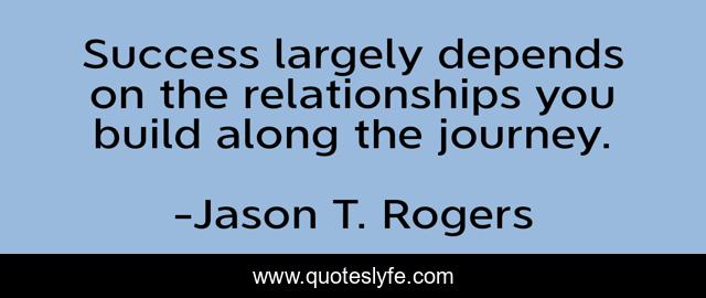 This page presents the quote "Success largely depends on the relationships you build along the journey.". Author of this quote is Jason T. Rogers. This quote is about relationships, conversation, networking, skills, social,.