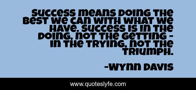 This page presents the quote "Success means doing the best we can with what we have. Success is in the doing, not the getting - in the trying, not the triumph.". Author of this quote is Wynn Davis. This quote is about wise-words, success,.