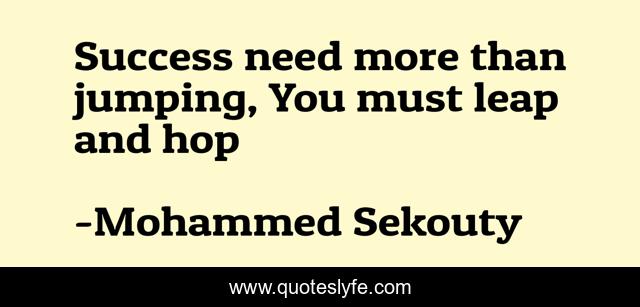 This page presents the quote "Success need more than jumping, You must leap and hop". Author of this quote is Mohammed Sekouty. This quote is about jump, life, success,.