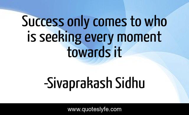 This page presents the quote "Success only comes to who is seeking every moment towards it". Author of this quote is Sivaprakash Sidhu. This quote is about success-strategies, sivaprakash-sivaprakash-sidhu, success,.