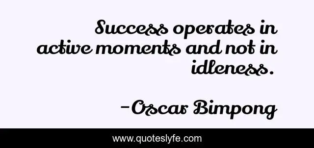 This page presents the quote "Success operates in active moments and not in idleness.". Author of this quote is Oscar Bimpong. This quote is about active-moments, idleness, success, operates,.