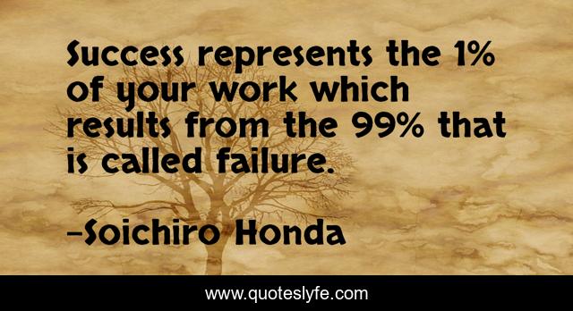 This page presents the quote "Success represents the 1% of your work which results from the 99% that is called failure.". Author of this quote is Soichiro Honda. This quote is about work, results, success,.