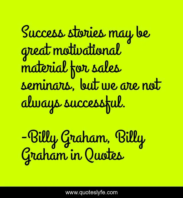 This page presents the quote "Success stories may be great motivational material for sales seminars, but we are not always successful.". Author of this quote is Billy Graham, Billy Graham in Quotes. This quote is about success, billy-graham,.