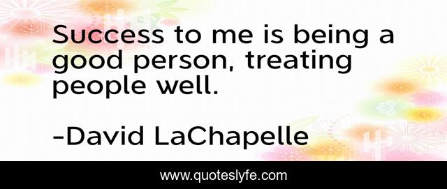 This page presents the quote "Success to me is being a good person, treating people well.". Author of this quote is David LaChapelle. This quote is about me, good, good person,.