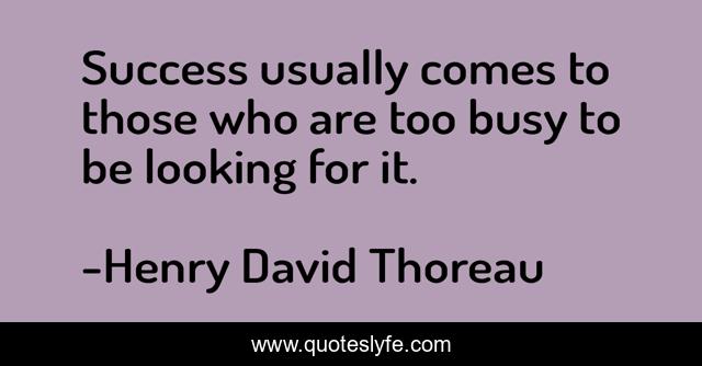 This page presents the quote "Success usually comes to those who are too busy to be looking for it.". Author of this quote is Henry David Thoreau. .