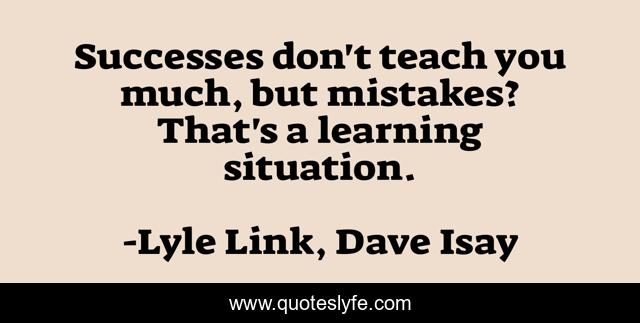 This page presents the quote "Successes don't teach you much, but mistakes? That's a learning situation.". Author of this quote is Lyle Link, Dave Isay. This quote is about mistakes, education, learning,.