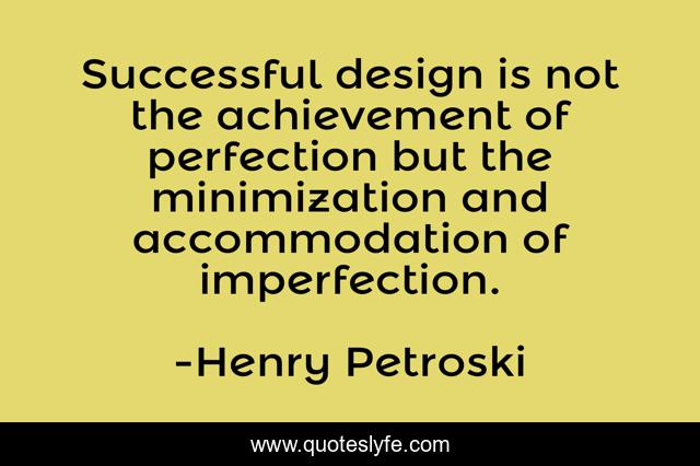 This page presents the quote "Successful design is not the achievement of perfection but the minimization and accommodation of imperfection.". Author of this quote is Henry Petroski. This quote is about perfection, achievement,.