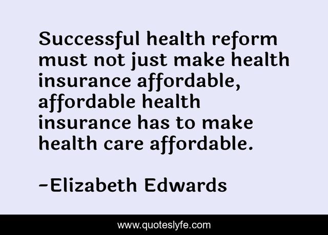 This page presents the quote "Successful health reform must not just make health insurance affordable, affordable health insurance has to make health care affordable.". Author of this quote is Elizabeth Edwards. This quote is about successful, insurance, care,.