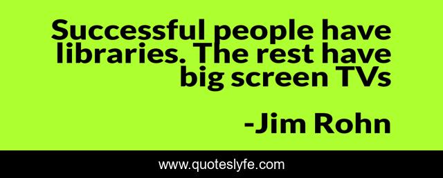 This page presents the quote "Successful people have libraries. The rest have big screen TVs.". Author of this quote is Jim Rohn. This quote is about enthusiasm, inspirational,.