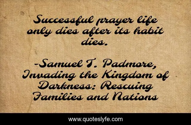 This page presents the quote "Successful prayer life only dies after its habit dies.". Author of this quote is Samuel T. Padmore, Invading the Kingdom of Darkness: Rescuing Families and Nations. This quote is about praying, prayer,.