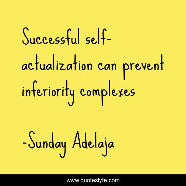 This page presents the quote "Successful self-actualization can prevent inferiority complexes". Author of this quote is Sunday Adelaja. This quote is about life, goal, successful, calling, inferiority, mission, complexes, purpose, self-actualization,.
