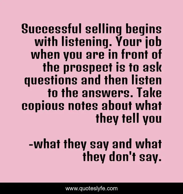 "what they say and what they don't say. Quotes." Quoteslyfe.com, 2025. Sat. 06 Dec. 2025. <https://www.quoteslyfe.com/quote/Successful-selling-begins-with-listening-Your-job-245279>.