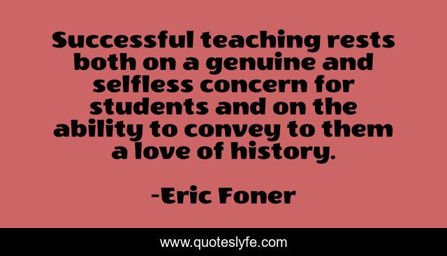 This page presents the quote "Successful teaching rests both on a genuine and selfless concern for students and on the ability to convey to them a love of history.". Author of this quote is Eric Foner. .