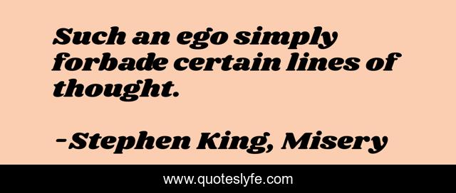 This page presents the quote "Such an ego simply forbade certain lines of thought.". Author of this quote is Stephen King, Misery. This quote is about stephen-king, ego, misery,.