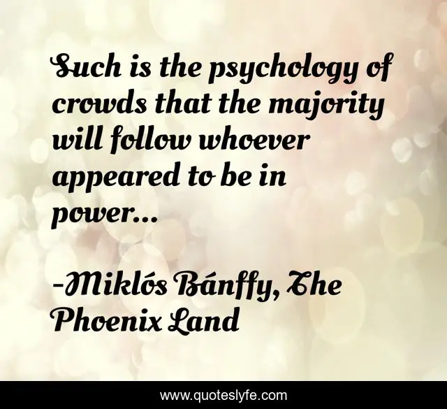 This page presents the quote "Such is the psychology of crowds that the majority will follow whoever appeared to be in power...". Author of this quote is Miklós Bánffy, The Phoenix Land. .