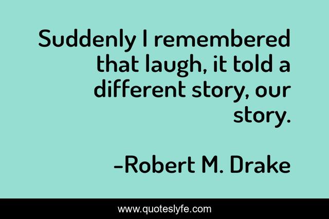 This page presents the quote "Suddenly I remembered that laugh, it told a different story, our story.". Author of this quote is Robert M. Drake. This quote is about lovequotes, sadquotes, poetry, quotes, instadaily, happyquotes, relationships, sayings, writer,.