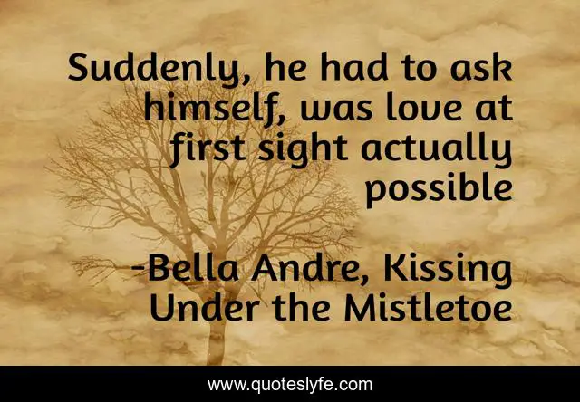 This page presents the quote "Suddenly, he had to ask himself, was love at first sight actually possible". Author of this quote is Bella Andre, Kissing Under the Mistletoe. This quote is about love, contemporary-romance, steamy-romance, families, best-about-love, affection, romantic,.