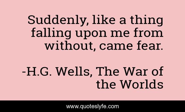 This page presents the quote "Suddenly, like a thing falling upon me from without, came fear.". Author of this quote is H.G. Wells, The War of the Worlds. .