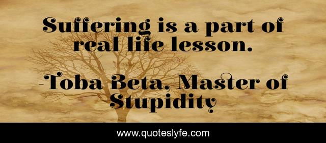 This page presents the quote "Suffering is a part of real life lesson.". Author of this quote is Toba Beta, Master of Stupidity. This quote is about real, life, suffering, part, learning, lesson,.