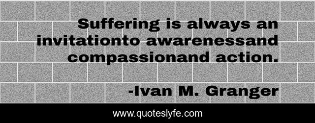 This page presents the quote "Suffering is always an invitationto awarenessand compassionand action.". Author of this quote is Ivan M. Granger. This quote is about compassion, suffering, awareness,.