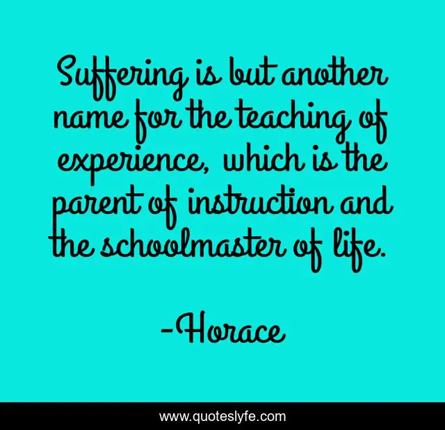 This page presents the quote "Suffering is but another name for the teaching of experience, which is the parent of instruction and the schoolmaster of life.". Author of this quote is Horace. This quote is about life, suffering, parent,.
