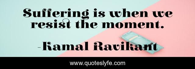 This page presents the quote "Suffering is when we resist the moment.". Author of this quote is Kamal Ravikant. This quote is about suffering, resistance, self-improvement,.
