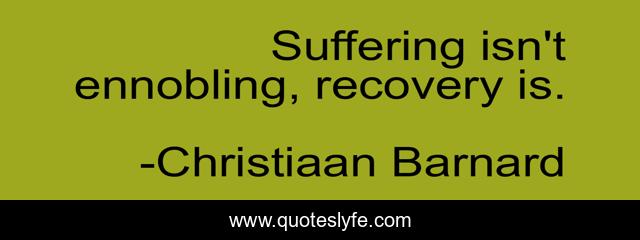 This page presents the quote "Suffering isn't ennobling, recovery is.". Author of this quote is Christiaan Barnard. This quote is about suffering, recovery,.