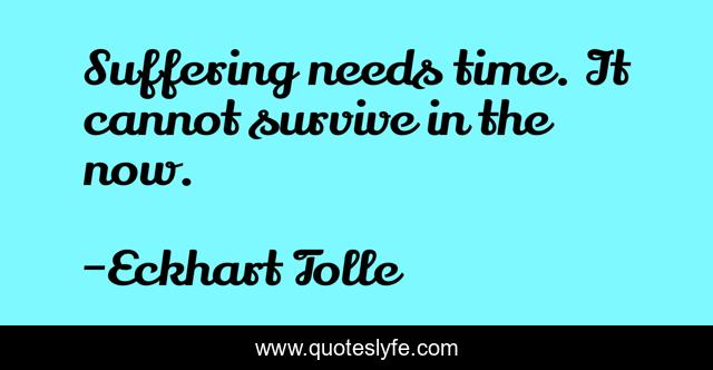 This page presents the quote "Suffering needs time. It cannot survive in the now.". Author of this quote is Eckhart Tolle. This quote is about suffering, living-in-the-present,.
