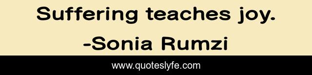 This page presents the quote "Suffering teaches joy.". Author of this quote is Sonia Rumzi. This quote is about life, pain, joy, wisdom, suffering, abuse, happiness,.