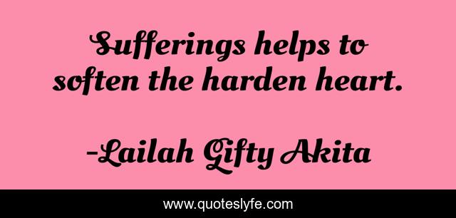 "Lailah Gifty Akita Quotes." Quoteslyfe.com, 2025. Mon. 08 Dec. 2025. <https://www.quoteslyfe.com/quote/Sufferings-helps-to-soften-the-harden-heart-143666>.