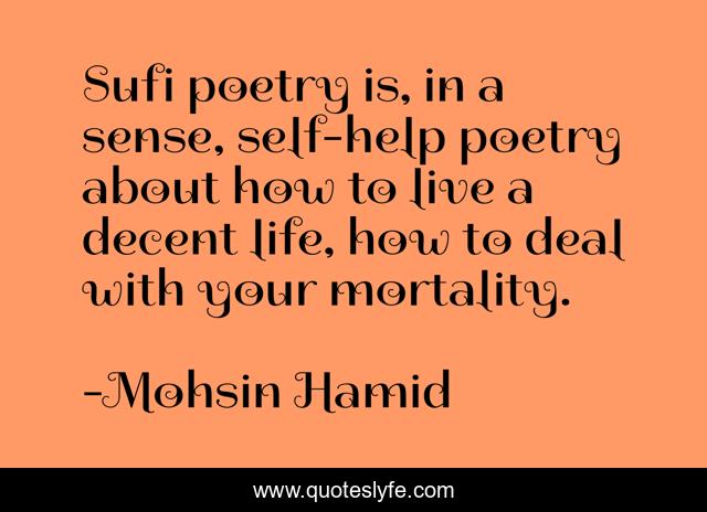 This page presents the quote "Sufi poetry is, in a sense, self-help poetry about how to live a decent life, how to deal with your mortality.". Author of this quote is Mohsin Hamid. This quote is about life, live, sense,.