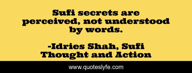 This page presents the quote "Sufi secrets are perceived, not understood by words.". Author of this quote is Idries Shah, Sufi Thought and Action. This quote is about secrets, rumi, evolution, sufis, sufism,.