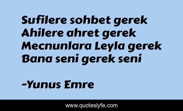 "Yunus Emre Quotes." Quoteslyfe.com, 2025. Sat. 06 Dec. 2025. <https://www.quoteslyfe.com/quote/Sufilere-sohbet-gerek-Ahilere-ahret-gerek-Mecnunlara-25111>.
