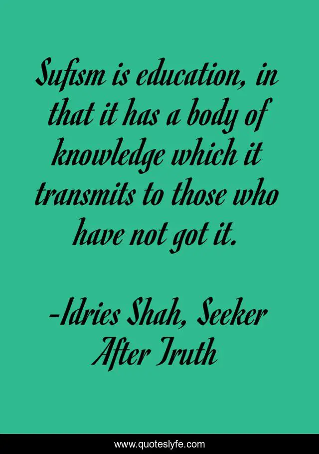 "Idries Shah, Seeker After Truth Quotes." Quoteslyfe.com, 2025. Sun. 07 Dec. 2025. <https://www.quoteslyfe.com/quote/Sufism-is-education-in-that-it-has-203399>.