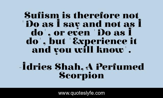 "Idries Shah, A Perfumed Scorpion Quotes." Quoteslyfe.com, 2025. Fri. 05 Dec. 2025. <https://www.quoteslyfe.com/quote/Sufism-is-therefore-not-Do-as-I-158826>.